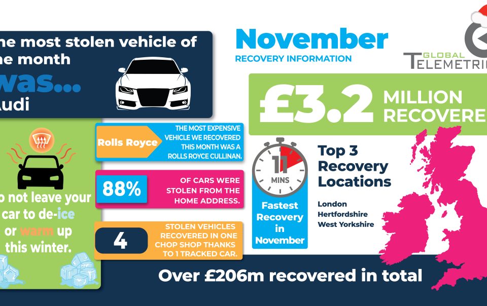 During September, Global Telemetrics monitored tracking systems recovered £1.9m worth of stolen vehicles, our recovery total stands at over £196m